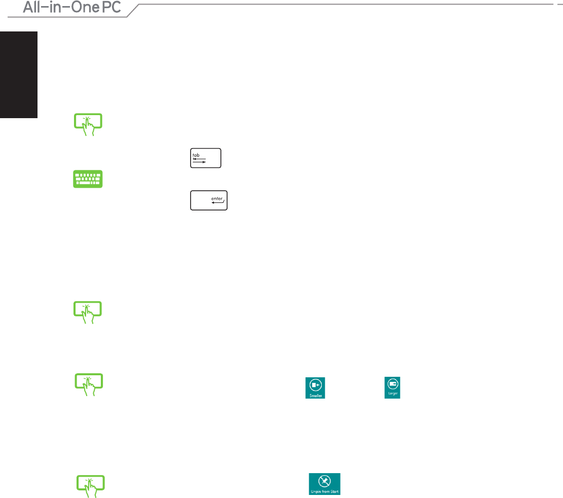Potete spostare, ridimensionare, rimuovere applicazioni dal menu Start in uno dei seguenti