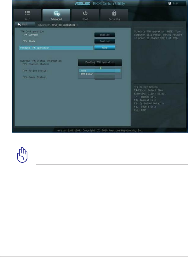 TPM pendente aparecerá. Dena este item como [Limpar TPM] para